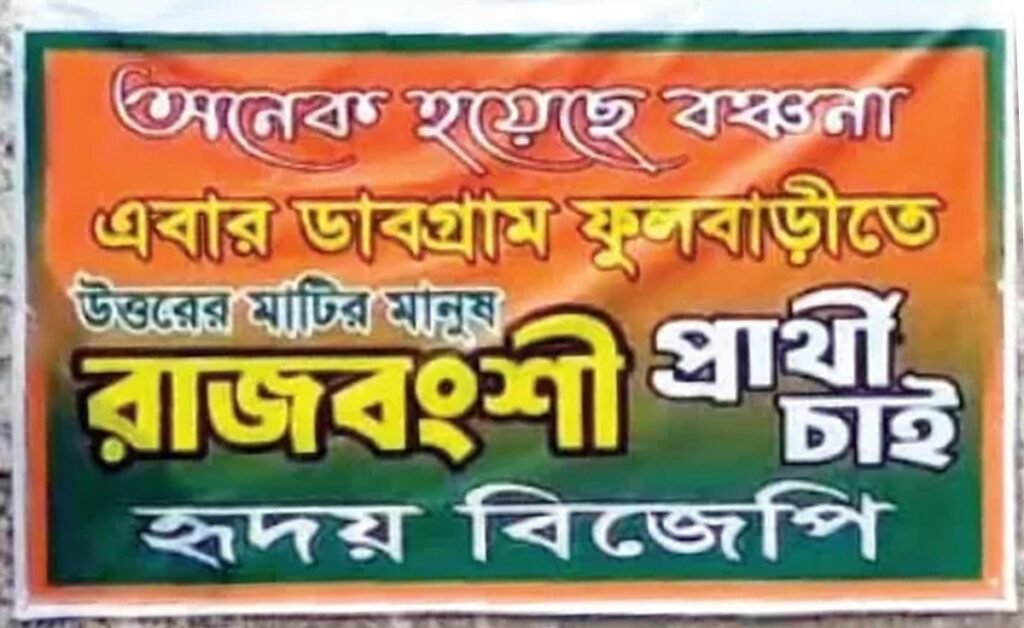 डाबग्राम–फूलबारी विधानसभा क्षेत्रमा उम्मेदवार बन्ने प्रतिस्पर्धामा भाजपा विभिन्न गुटमा विभाजित भएको छ। राजवंशी अनुहारलाई उम्मेदवार बनाउने माग गर्दै क्षेत्रमा हृदय भाजपा लेखिएको ब्यानरमा थुप्रै पोष्टर टाँसिएका छन्। यसले भाजपाभित्र रहेको गुटबन्दीलाई सार्वजनिक बनाएको छ। पार्टीको यस आन्तरिक विवादका कारण वर्तमान विधायक शिखा च्याटर्जी दबाउमा परेकी छन्। स्थिति नियन्त्रण गर्न तिनले पोष्टरको यस घटनालाई तृणमूलको षड़यन्त्र […]