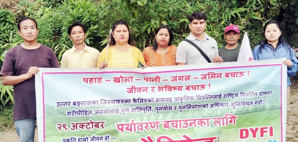 दार्जीलिङ पहाडको खोला,प्राकृतिक सम्पदा अनि पानीको संरक्षण गर्ने उदेश्यमा माकपाको युवा सङ्गठन डीवाईएफआईले मिरिक नन्दलाल गाउँ सार्वजनिक भवनमा स्थानीय पैह्रो पीड़ित अनि साधारण नागरिकहरूलाई सहभागी गराई पर्यावरण बचाओै बेरीगेट नामक सचेतना कार्यक्रमको आयोजना गरेको छ। कार्यक्रममा डीवाईएफआई राज्य कमिटी अध्यक्ष रोनाङ्सु सरकार, जिल्ला अध्यक्ष सागर शर्मा, मिरिकका माकपा नेता किस्मत तामाङको विशेष उपस्थिति रहेको थियो।कार्यक्रममा […]