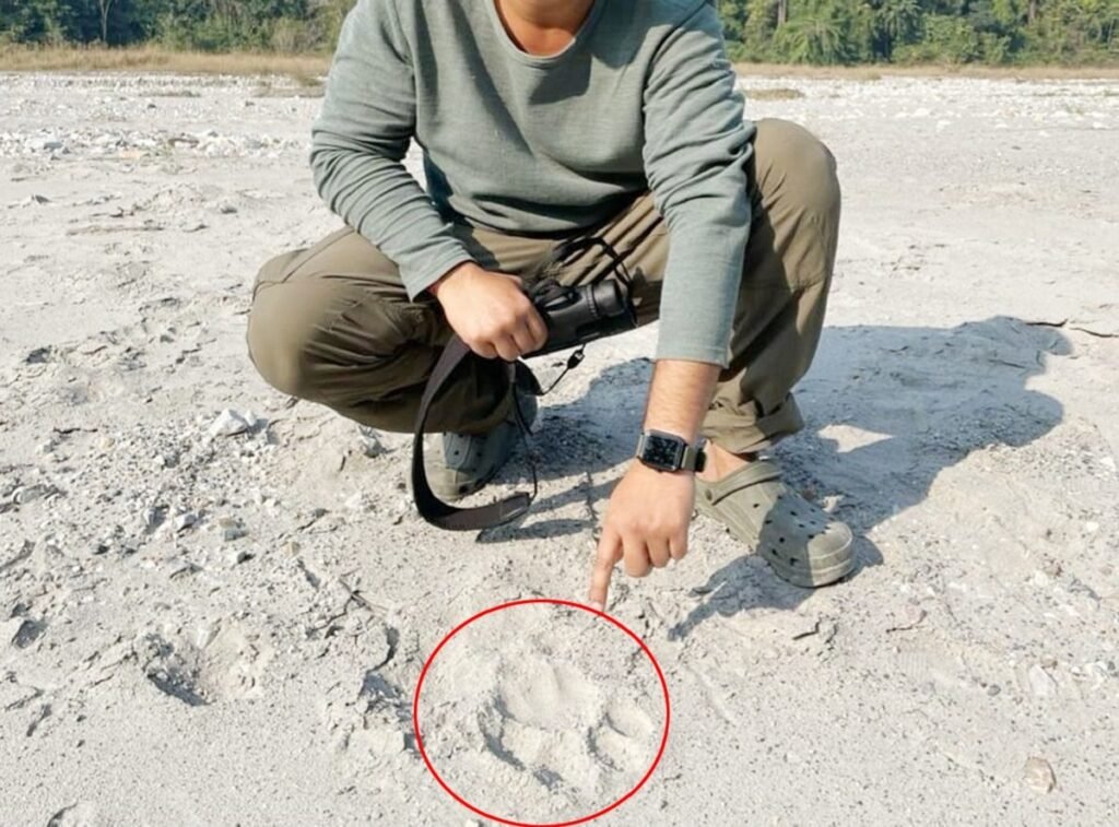 बक्सा बाघ परियोजनाको जङ्गलमा बाघको पाइला